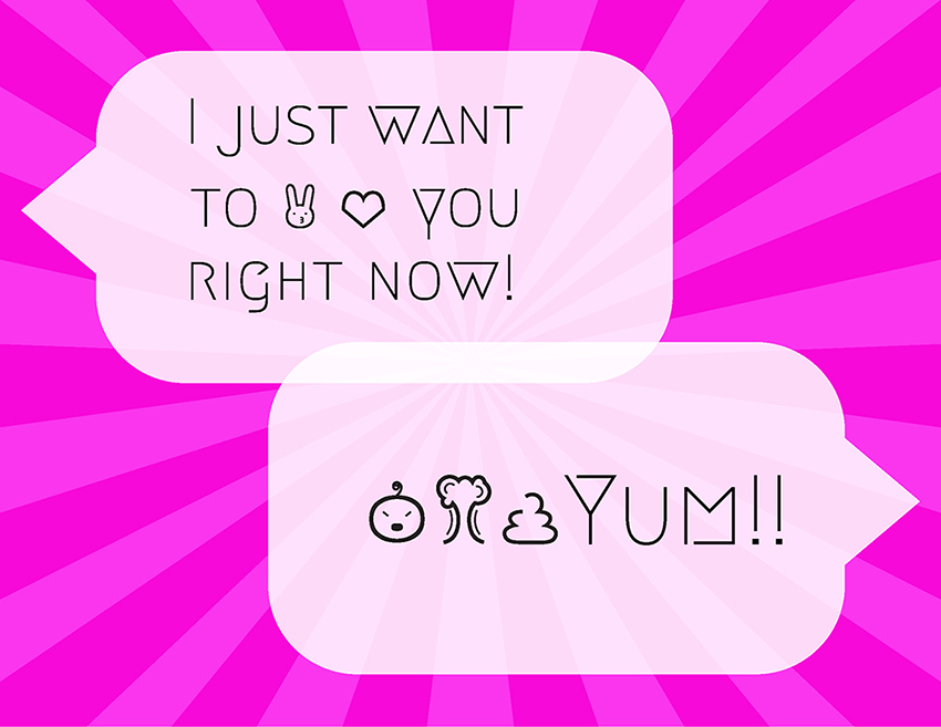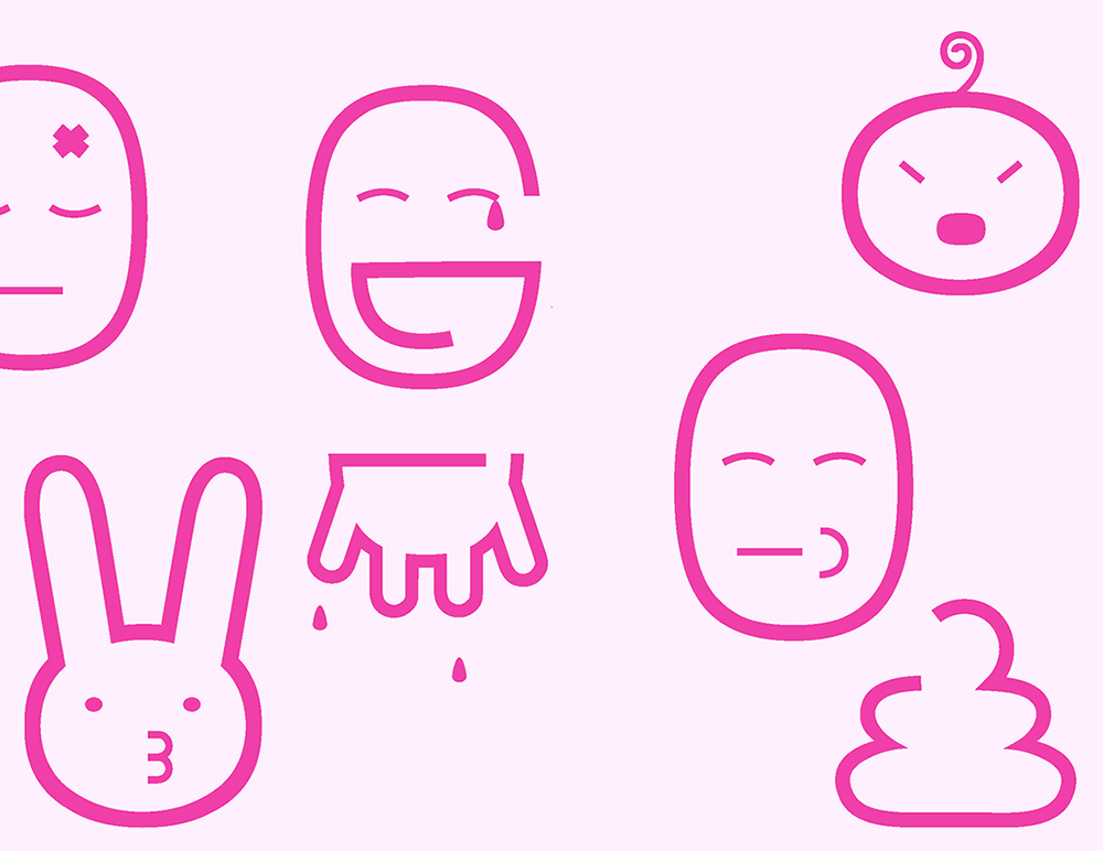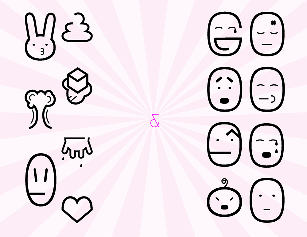 2015 Set of 15 emojis designed for the typeface Megrim by Daniel Johnson. Sometimes, emojis can take on double meanings; suggestive themes and ambiguity allow these emojis to be used in a variety of miscellaneous conversations.